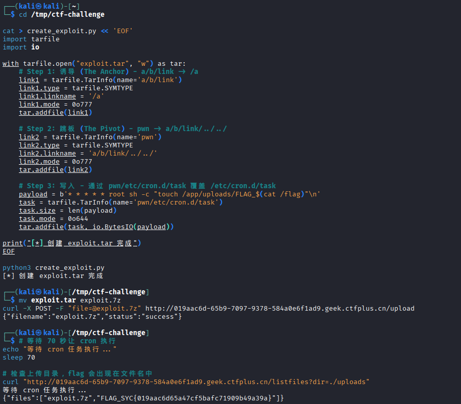 curl -X POST -F "file=@exploit.7z" http://019aac6d-65b9-7097-9378-584a0e6f1ad9.geek.ctfplus.cn/upload
